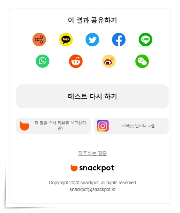 아래는 스낵팟 테스트 이용방법입니다. 참고하셔서 재밌게 결과를 공유해 보세요.