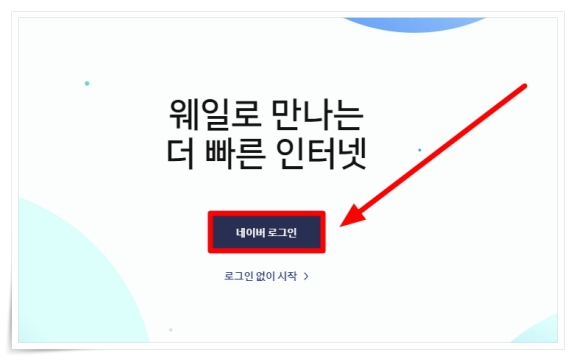 ▼ 웨일 브라우저 실행 후 "네이버 로그인"을 클릭하여 로그인해 주세요.