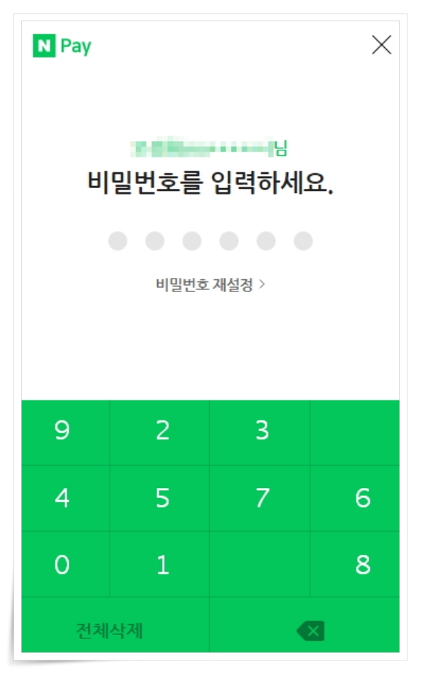 ▼ 네이버 페이 비밀번호를 입력해 주세요. 만약 페이가 없다면 가입해 주셔야 합니다.