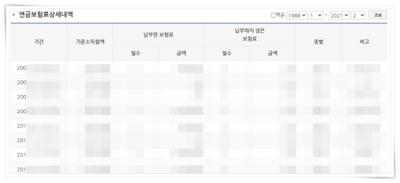 본인의 가입기간과 납부액을 알아보려면 간단하게 조회를 통해 확인해 볼 수 있는데요.
