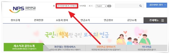 1. NPS 홈페이지 상단 "전자민원이용"을 클릭해 주세요. (바로가기)