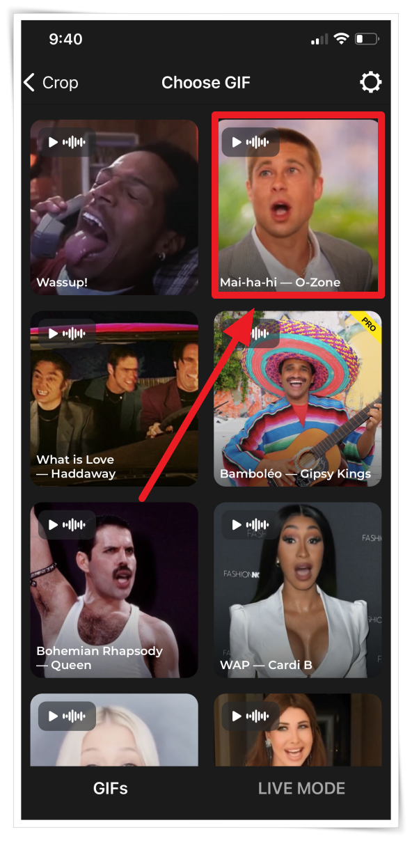 ▼ GIF 효과를 선택해 주세요. 마이야히 효과는 "Mai-ha-hi-o-Zone"을 선택하시면 됩니다.