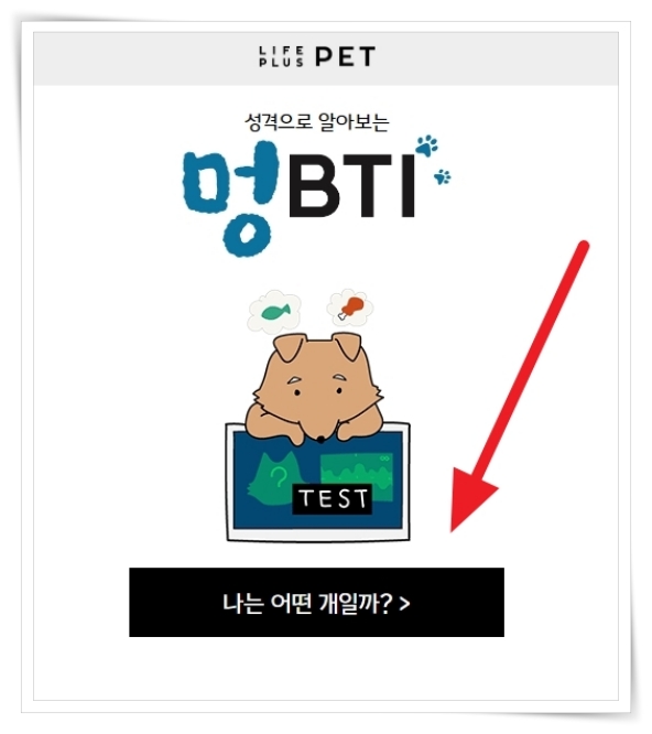 ▼ LIFE PLUS PET 테스트에서 "나는 어떤 개일까?"을 클릭해 주세요.