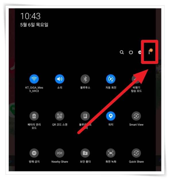 ▼ 상단바 메뉴를 쓸어 내려서 우측 상단 "점 세개 아이콘"을 클릭해 주세요.