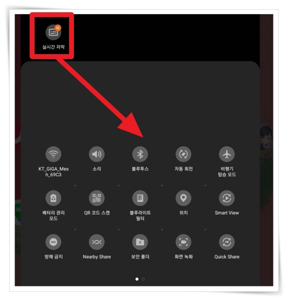 ▼ 실시간 자막 기능을 메뉴에 끌어서 추가해 주세요.
