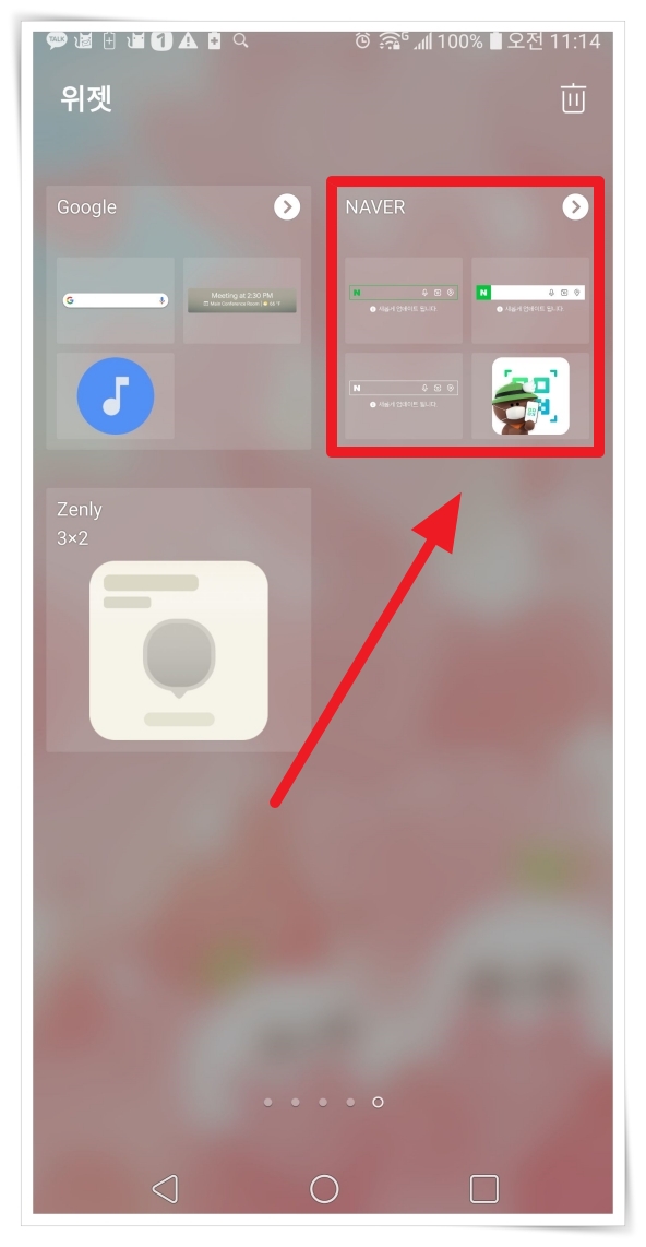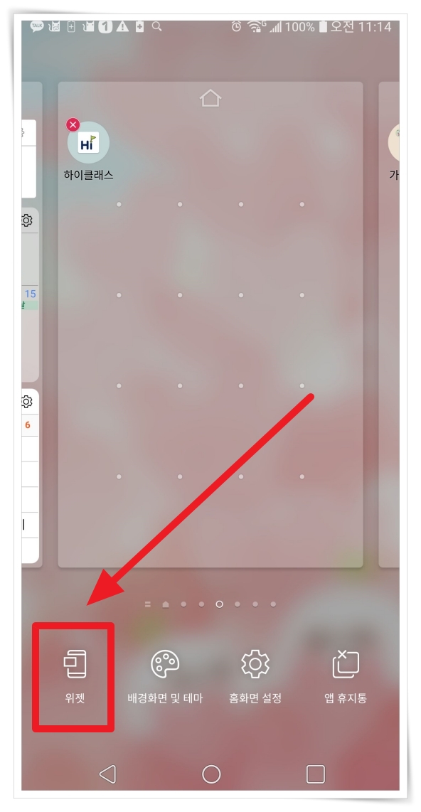 ▼ 하단 메뉴가 나타나면 "위젯"을 클릭해 주세요.