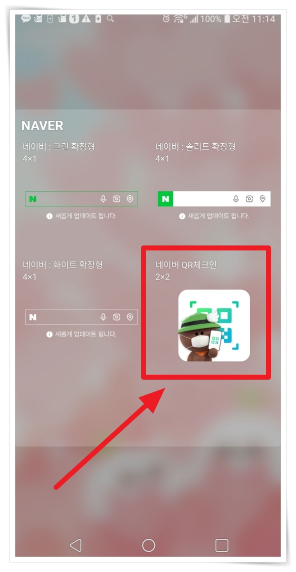 ▼ 위젯 형식에서 2X2 QR체크인을 선택해 주세요.
