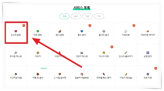 ▼ 홈페이지 메뉴에서 "인스타 폰트"를 클릭해 주세요. (바로가기)