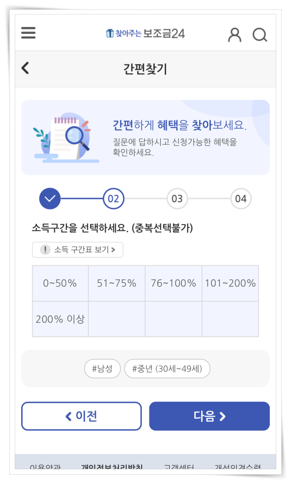 ▼ 본인의 연령대와 소득구간을 선택해 주세요.