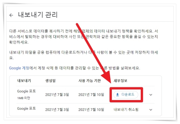구글 포토 사진 다운로드 방법