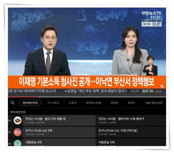 2. 바로 영상을 시청하실 수 있는데요. 영상의 화질과 크기를 조정할 수 있으며 편성표에서 채널 정보를 보실 수 있습니다.