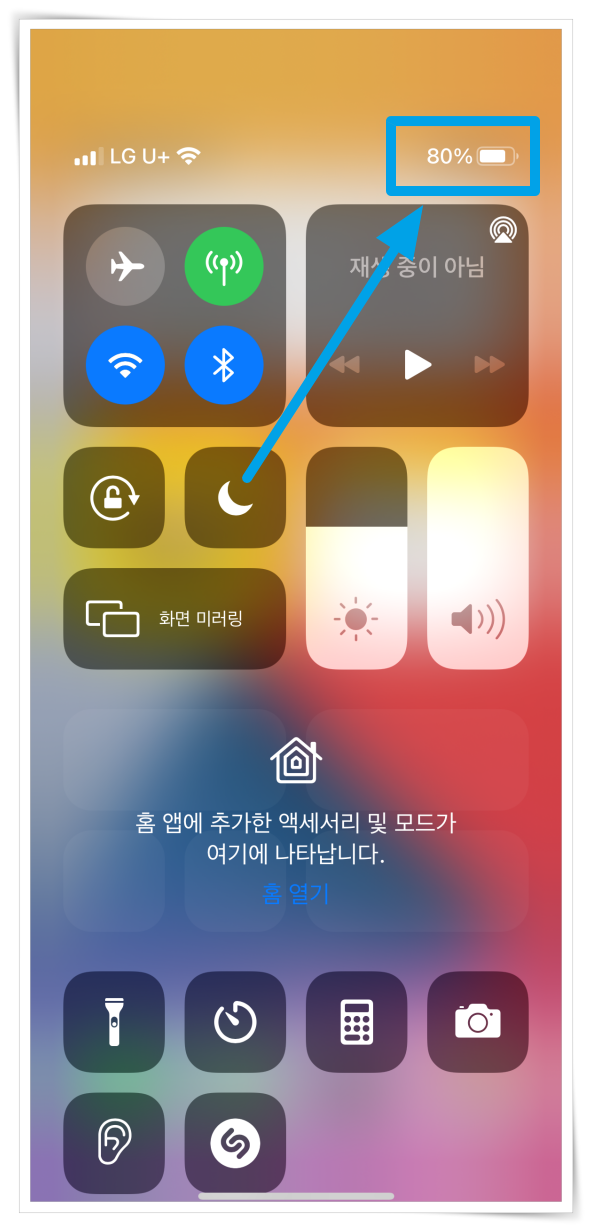 그런데 아이폰의 한가지 불편한 점이 있다면 배터리의 남은 잔량이 건전지 모양으로 표기되어 정확한 수치를 알 수 없죠. 이럴 때는 2가지 방법을 통해 간단하게 잔량을 퍼센트로 볼 수 있습니다.