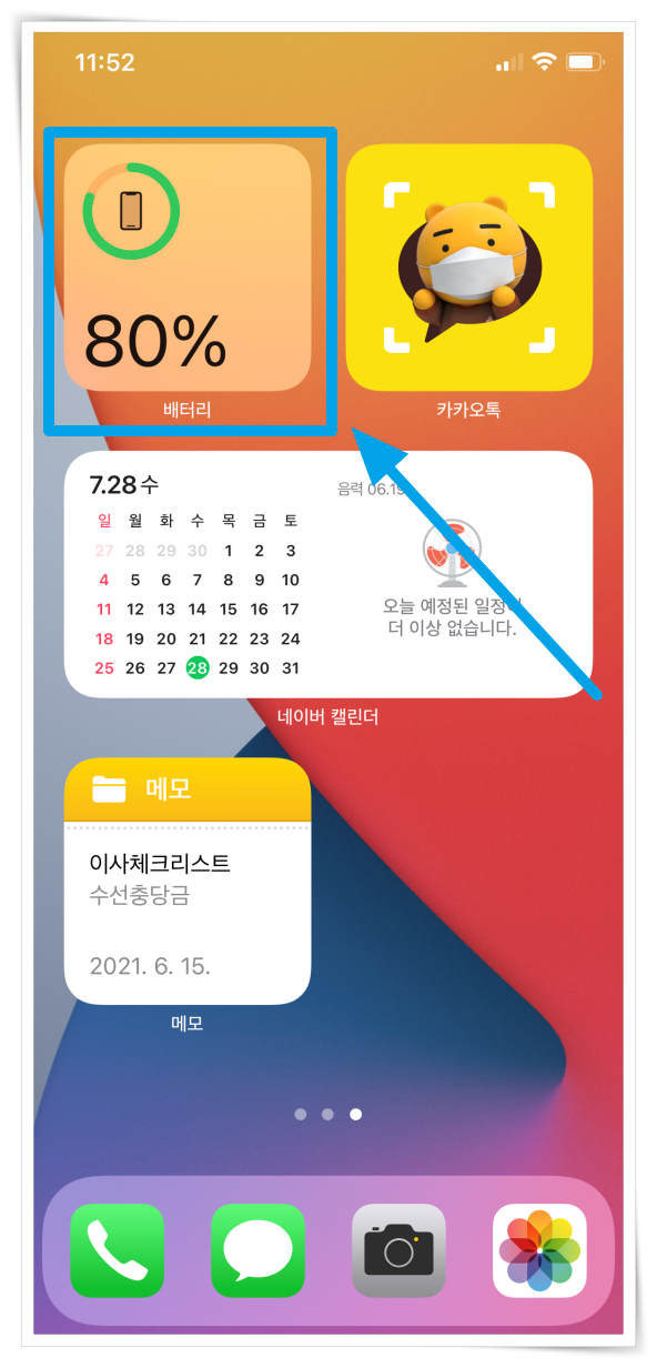 6. 원하는 위치에 위젯을 설치하면 잔량을 쉽게 확인하실 수 있습니다.