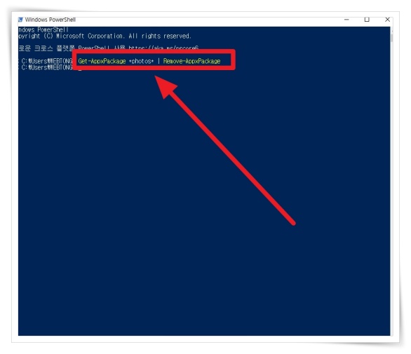 2. PowerShell 화면에 아래 문구를 입력하면 뷰어가 삭제됩니다.