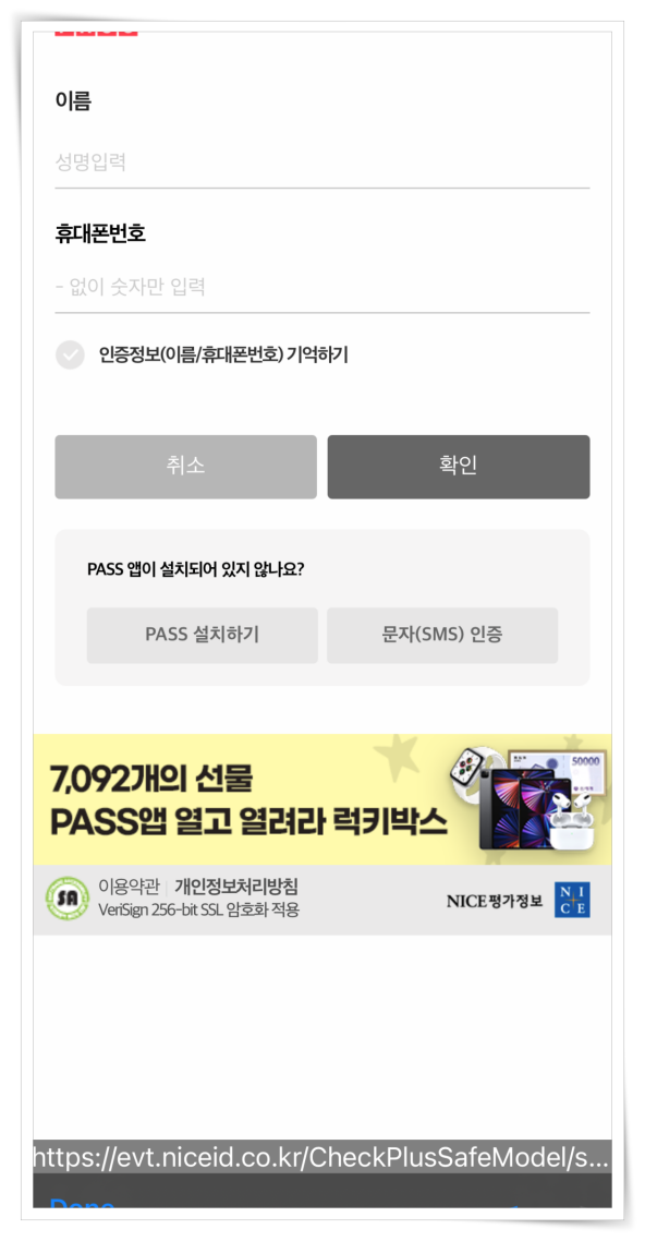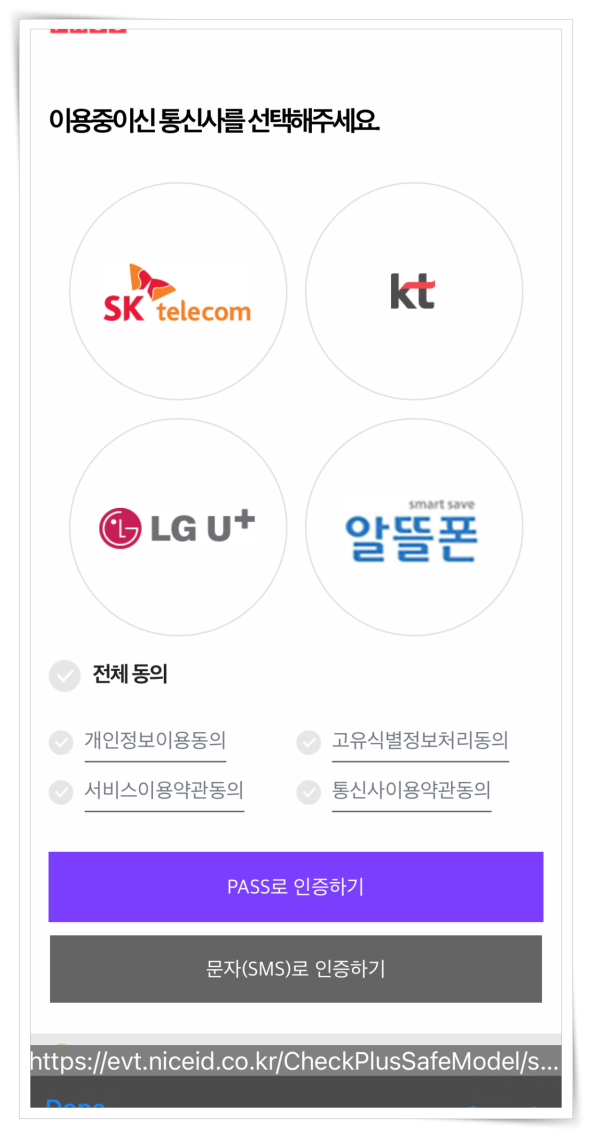 2. 본인 인증을 위해 이용중인 통신사를 선택하고 인증을 진행해 주세요.