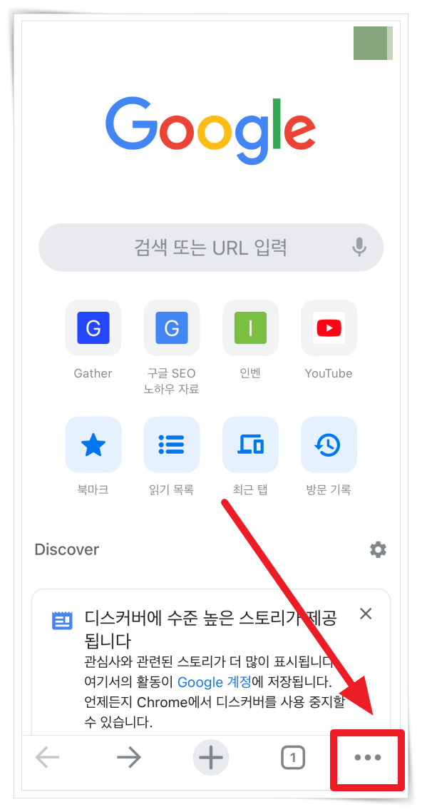 1. 구글 크롬 실행 후 하단 점 세개 메뉴에서 "방문 기록"을 클릭해 주세요.