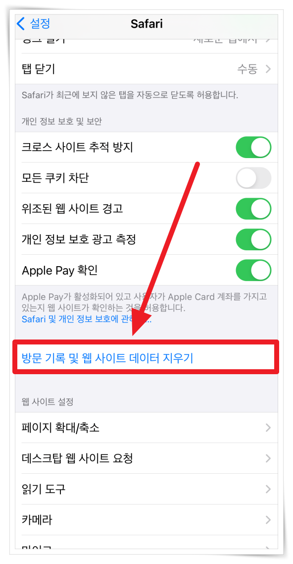 사파리 방문 기록 및 웹 사이트 데이터 지우기