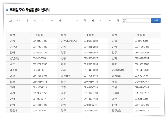 코레일 주요 유실물 센터