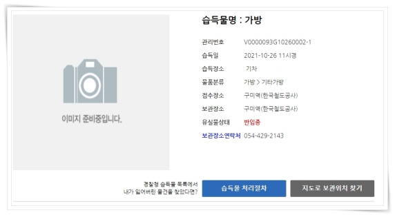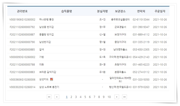 4. 그러면 보관장소, 연락처, 일자, 유실물 상태를 확인해 보실 수 있습니다.