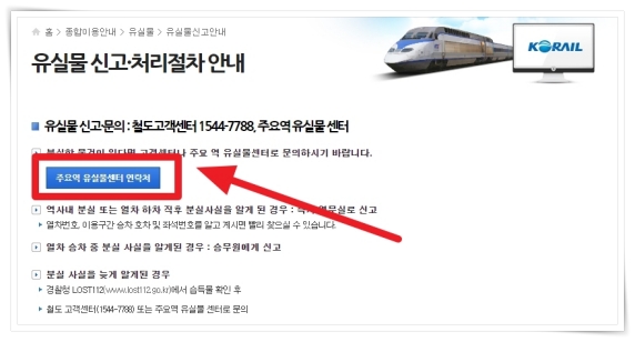 2. "주요역 유실물센터 연락처"를 클릭해 주세요.