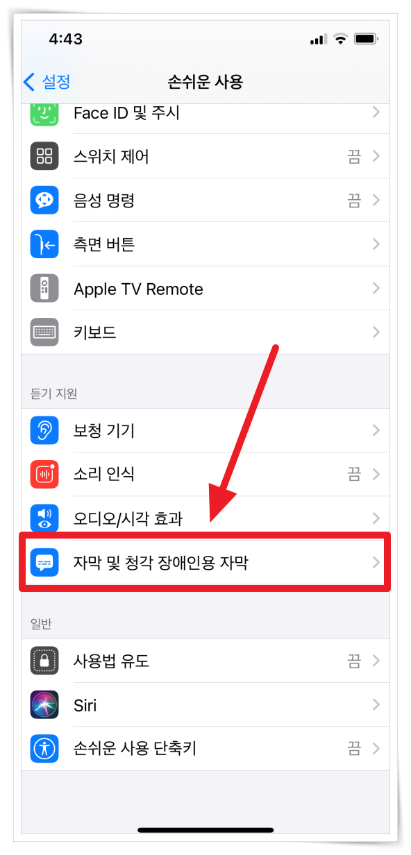 4. 아이폰에서 자막의 모양을 변경하려면 "아이폰 설정"을 클릭해 주세요.