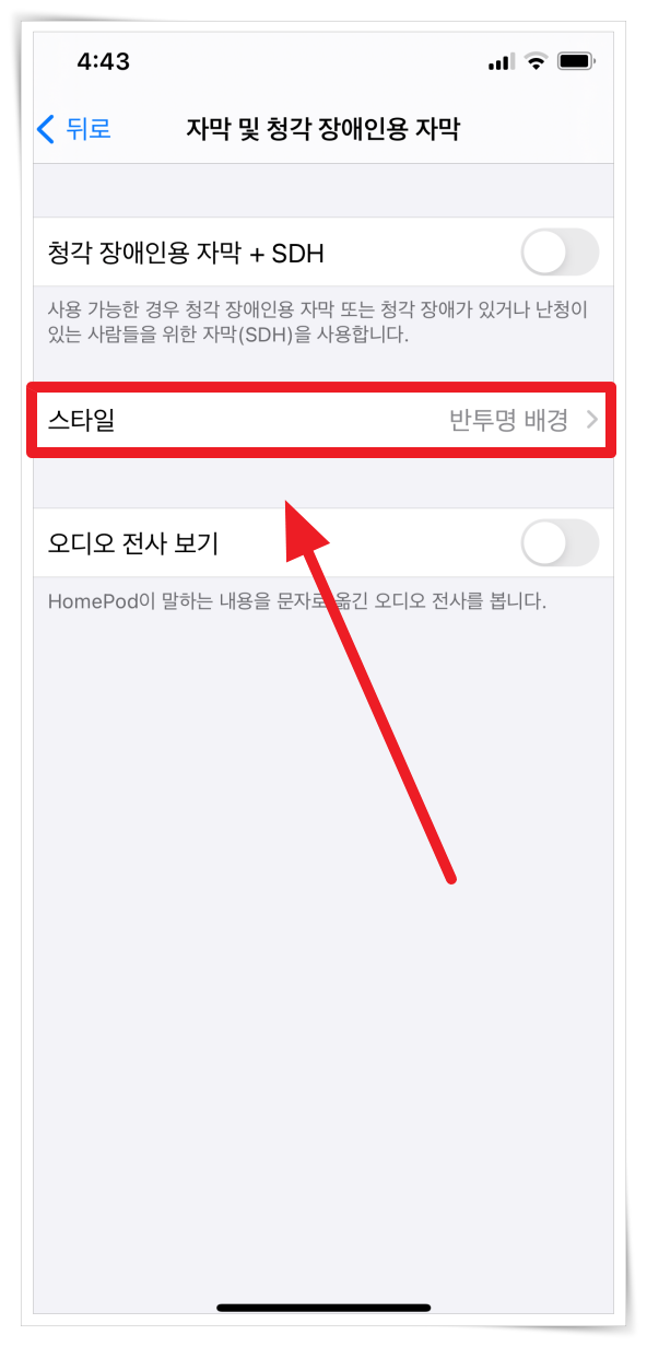 4. 아이폰에서 자막의 모양을 변경하려면 "아이폰 설정"을 클릭해 주세요.