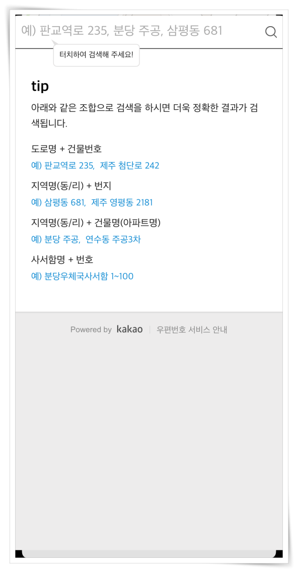 2. 검색창에 도로명 또는 건물명을 검색해 주세요.