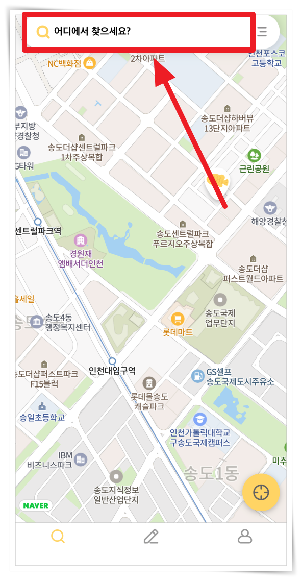 1. 앱 설치 후 상단 "검색창"을 클릭해 주세요.