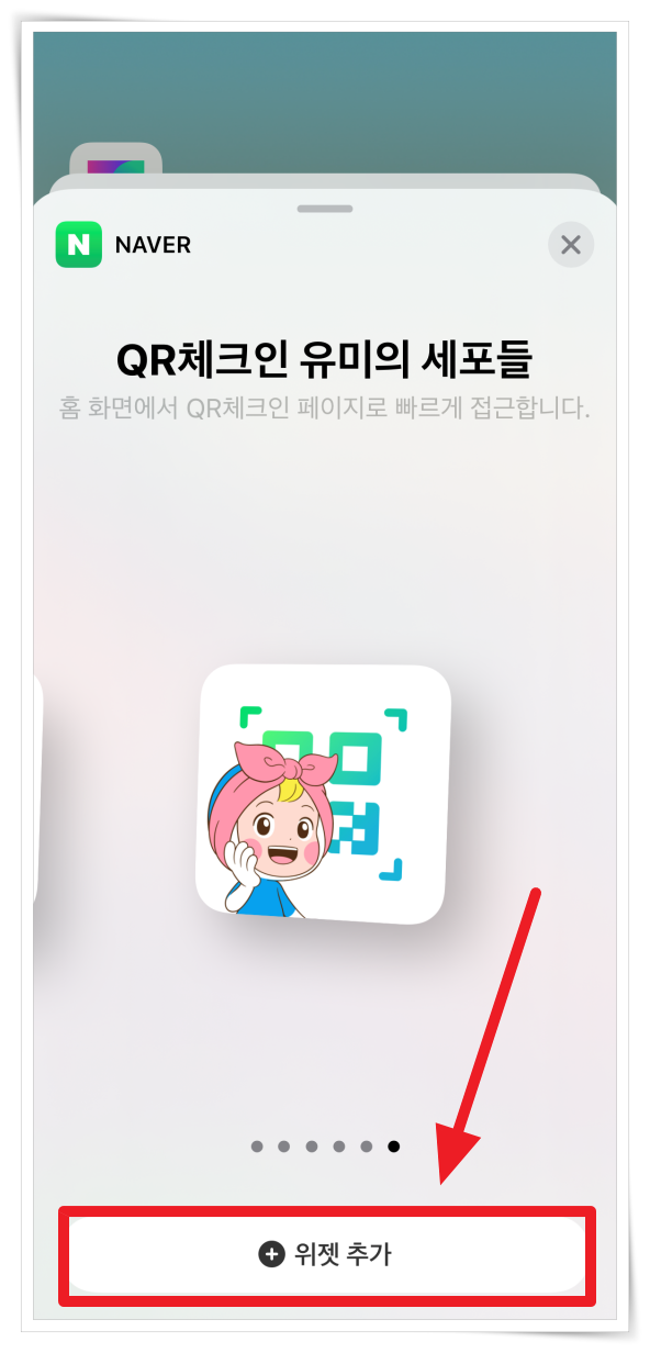 3. 두가지 종류의 QR체크인 아이콘을 선택하실 수 있습니다. 선택 후 "위젯 추가"를 클릭해 주세요.