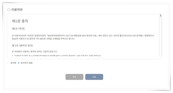 2. 이용약관에 모두 동의 후 "다음"을 클리해 주세요.