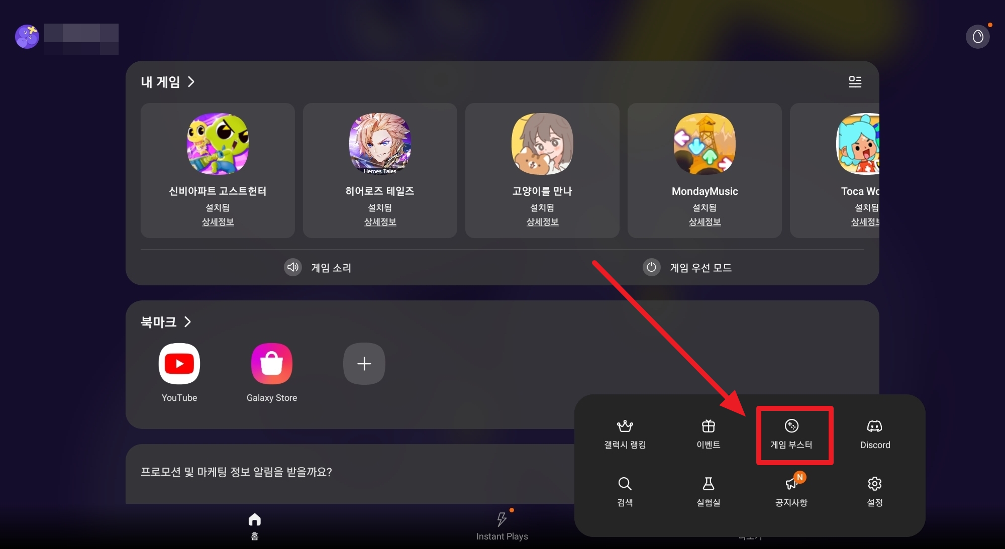 4. 메뉴에서 "게임 부스터"를 클릭해 주세요.