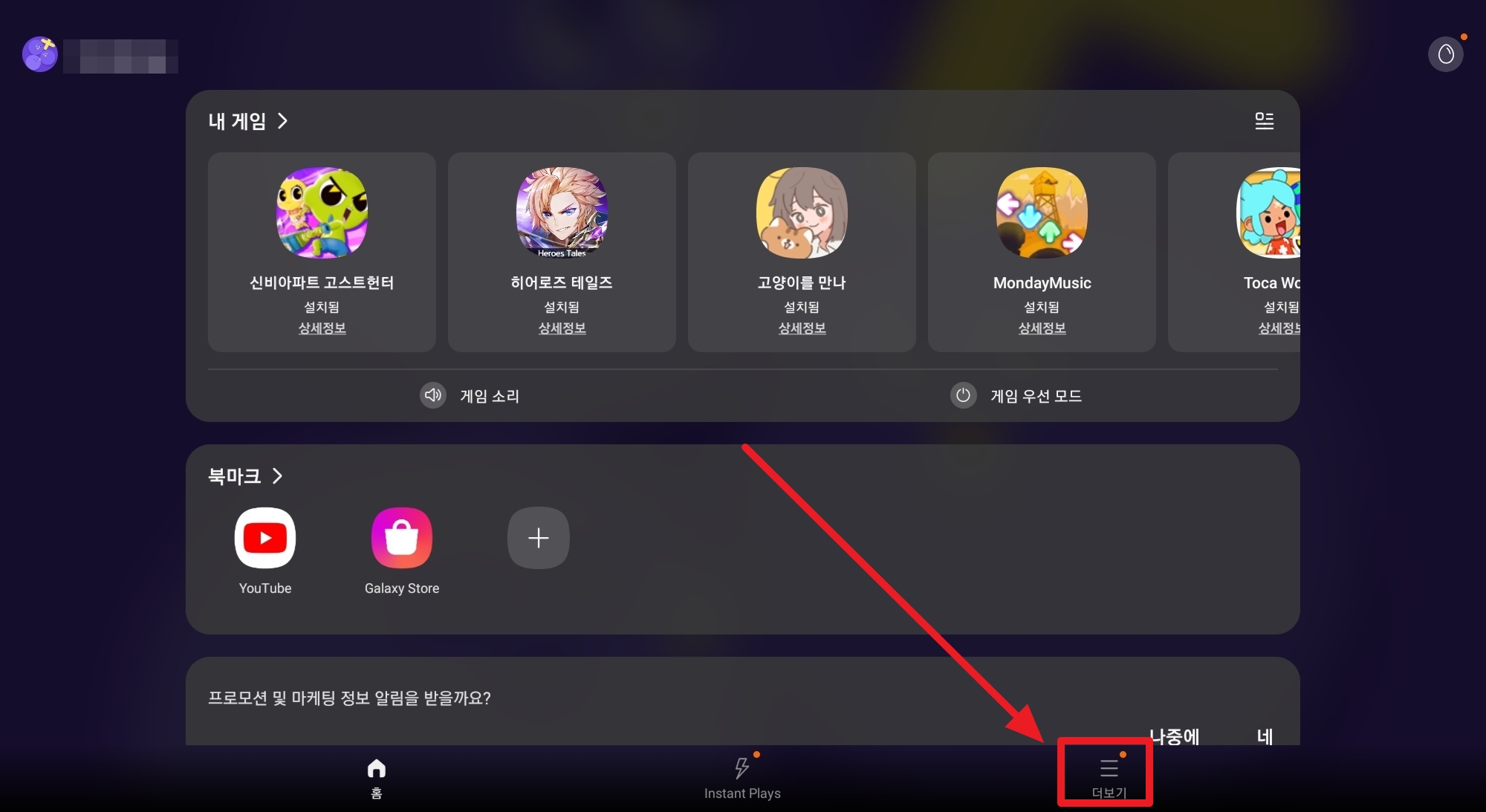 3. 게임런처 하단 "더보기" 메뉴를 클릭해 주세요.