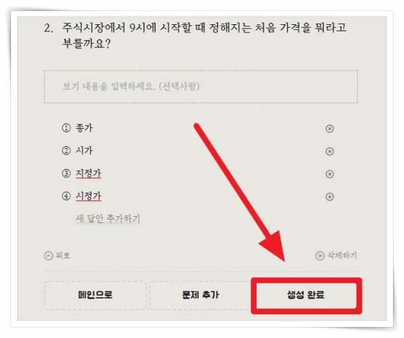 6. 작성이 완료되었다면 "생성 완료"로 마무리 해주세요.