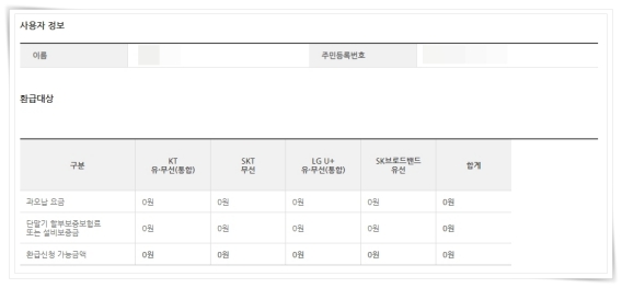 통신비 미환급금 조회