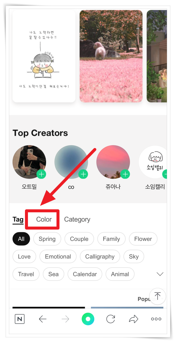 1. 홈페이지 상단 메뉴 "Wallpaper"에서 "Color"를 찾아 클릭해 주세요.