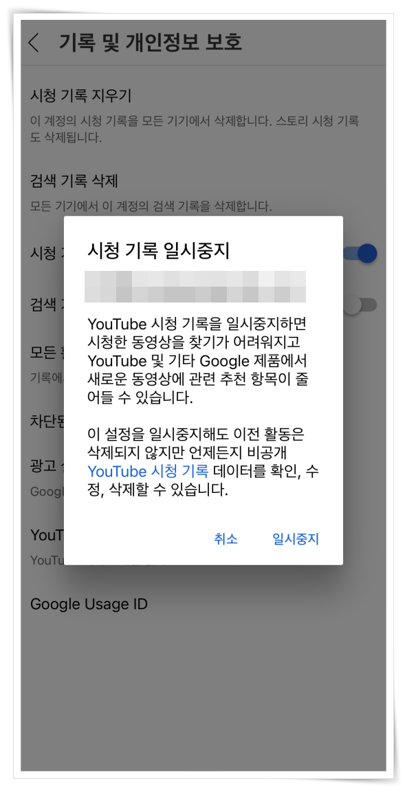 유튜브 알고리즘 초기화 및 일시정지