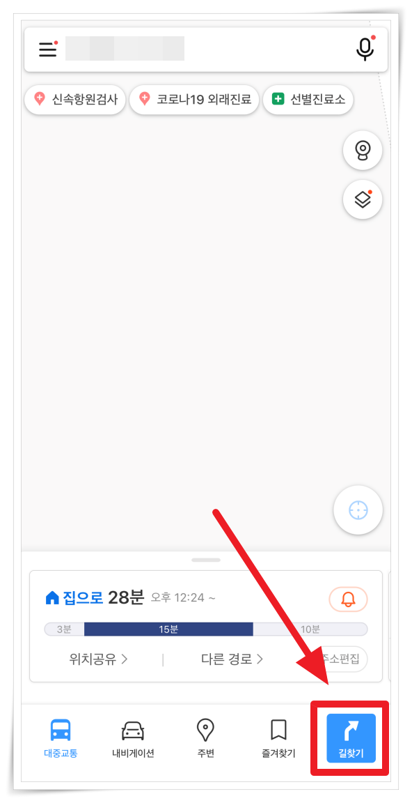 1. 앱 설치 후 우측 하단 "길찾기"를 클릭해 주세요.