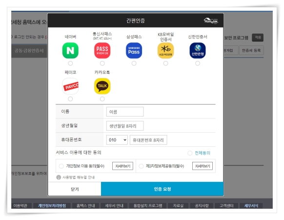 3. 간편인증은 컴퓨터에 보안 프로그램없이 네이버, 카카오톡으로 간단하게 인증이 가능합니다.