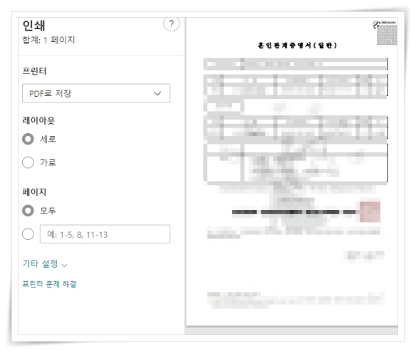 혼인관계증명서 인터넷 발급 및 출력