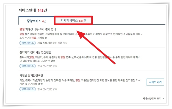 2. 서비스 안내에서 "지자체서비스" 탭을 클릭해 주세요.