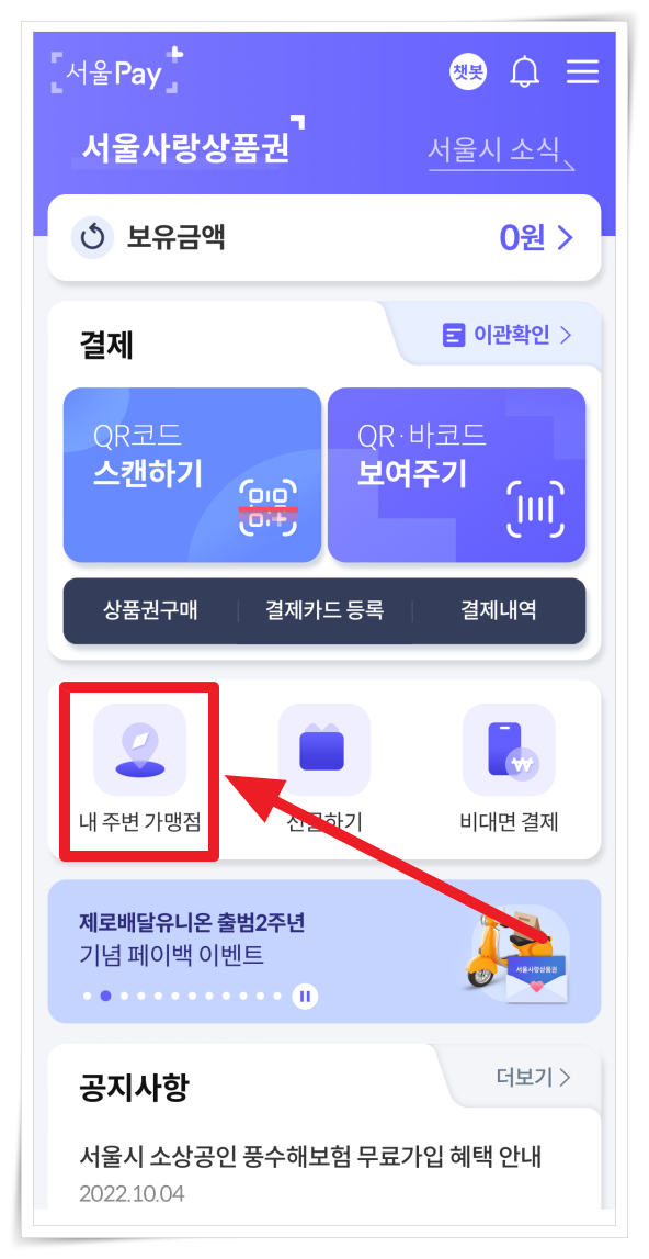 이번 포스팅은 서울페이 가맹점 찾는 방법을 알아볼게요. 서울시는 얼마 전 정부 주도의 제로페이에서 분리하여 독자적인 서울페이를 만들었죠. 처음 우려와는 달리 다양한 서비스를 제공하면서 순항중에 있습니다. 서울사랑상품권 구매 기능에 각종 행정 정보를 추가한 앱 3.0버전을 출시되면서 시자치구 뉴스는 물론 비지트서울, 엠보팅 등 다양한 행정 채널이 연결되었습니다. 그리고 3.0버전부터는 결제금액보다 상품권 잔액이 적을 경우 등록된 카드로 결제되어 잔액 부족 상황이 발생하지 않게 되었어요. 결제는 QR코드와 바코드 아이콘을 중심으로 주변가맹점 검색, 비대면 결제 등을 할 수 있습니다. 상품권 구매와 결제 내역도 터치 한 번에 확인 가능한데요.