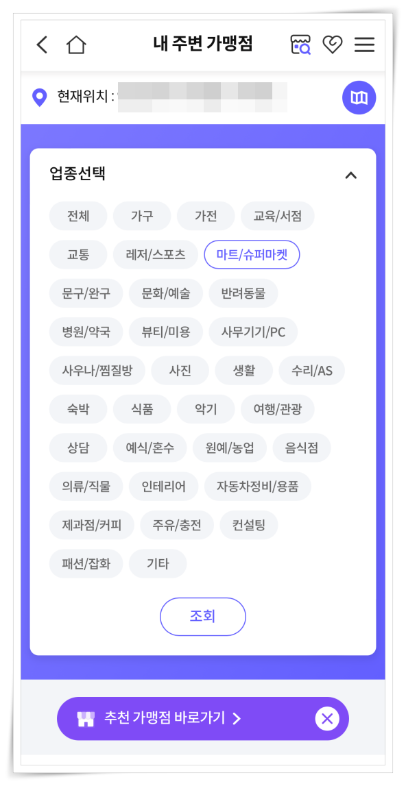 그리고 서울페이 사용처가 궁금하다면 간편 조회를 통해 주변 가맹점을 확인할 수 있어요.