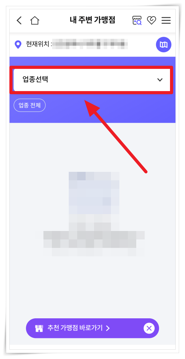 3. 가맹점 업종 선택에서 사용처 업종을 선택해 주세요.