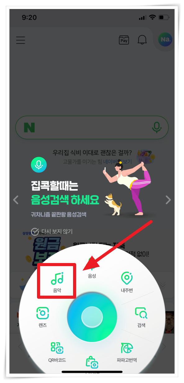 1. 네이버 앱 설치 후 하단 그린닷 메뉴를 클릭해 주세요.