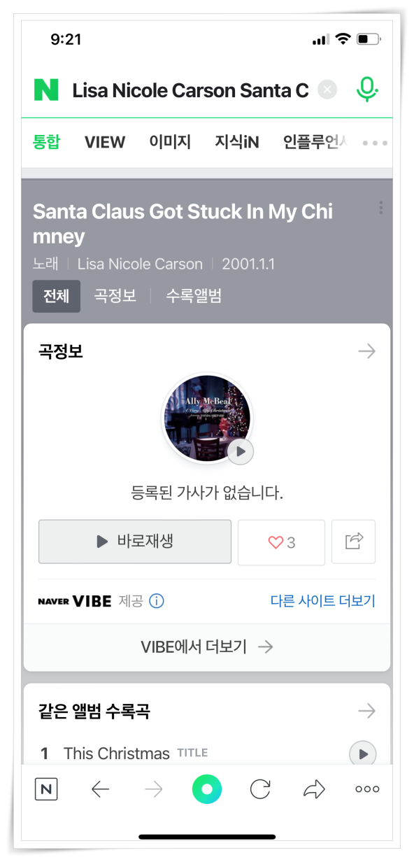 4. 그러면 결과에서 노래 정보를 보실 수 있습니다.