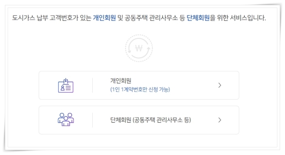 2. 개인회원(1인 1계약번호만 신청 가능)을 클릭해 주세요.