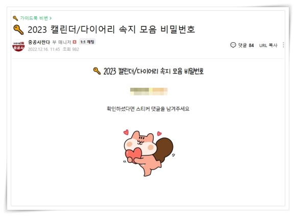 4. 그러면 블로그 또는 카페에서 자료를 받을 수 있는데요. 카페의 경우 비밀번호를 얻는 미션을 수행해야 합니다.
