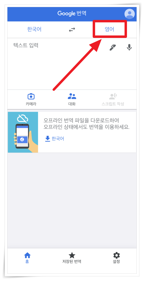 3. 번역기 하단 "한국어"도 클릭해서 언어팩을 설치해 주세요. 그러면 오프라인 상태에서도 언어를 번역할 수 있습니다.