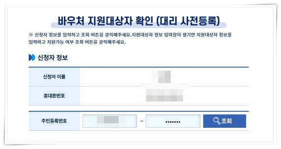 5. 바우처 지원 대상자 확인에서 "조회"를 클릭해 주세요.
