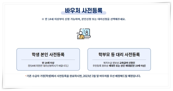사용기간은 지급된 날로부터 내년 8월 31일까지 사용할 수 있고 기한을 넘긴 미사용 잔액은 자동소멸됩니다. 대상은 만 14 이상 수급권자인 본인 또는 세대의 세대주, 성인 세대원이 할 수 있습니다. 신청기간은 3월 2일부터 6월 28일까지 접수할 수 있으며 사전등록과 본 신청으로 구분하여 운영됩니다.